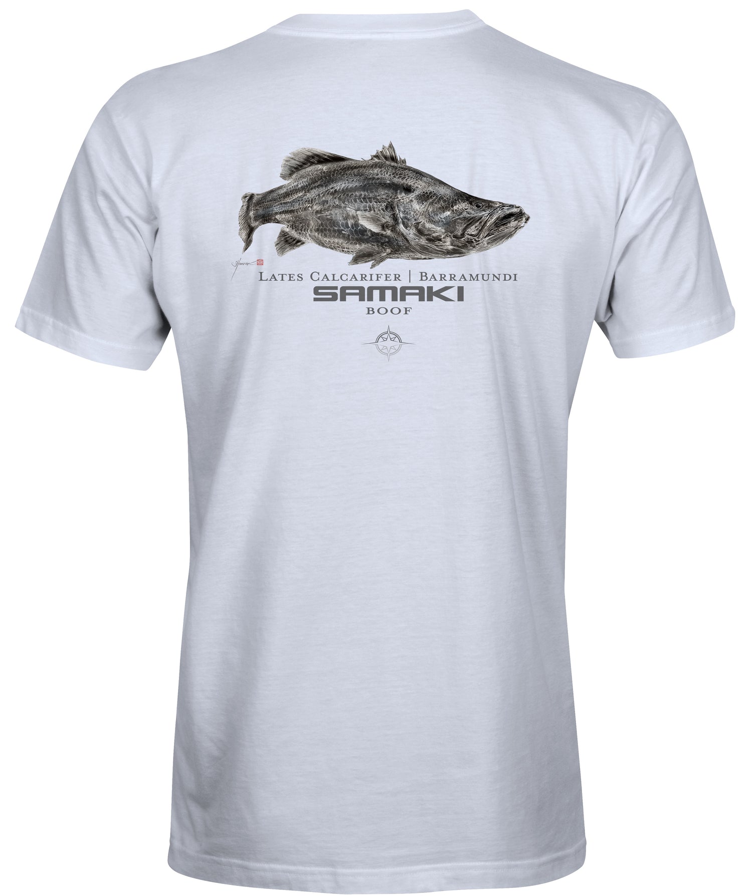 Samaki Barra Boof SS Tees White - S is backordered and will ship as soon as it is back in stock.