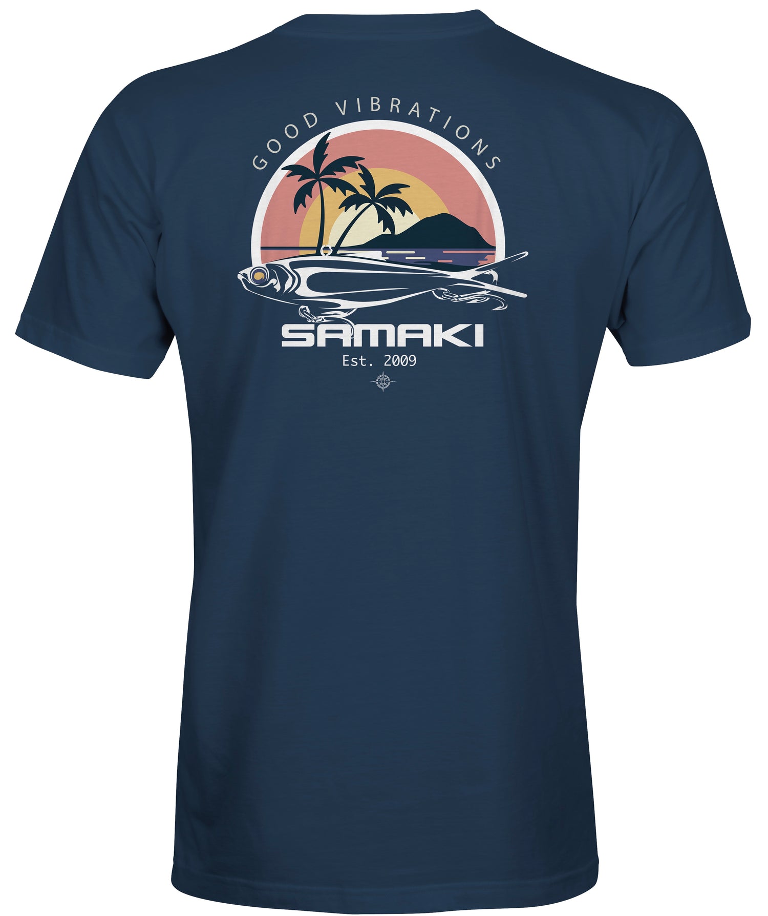 Samaki Good Vibrations SS Tees Cobalt - S is backordered and will ship as soon as it is back in stock.