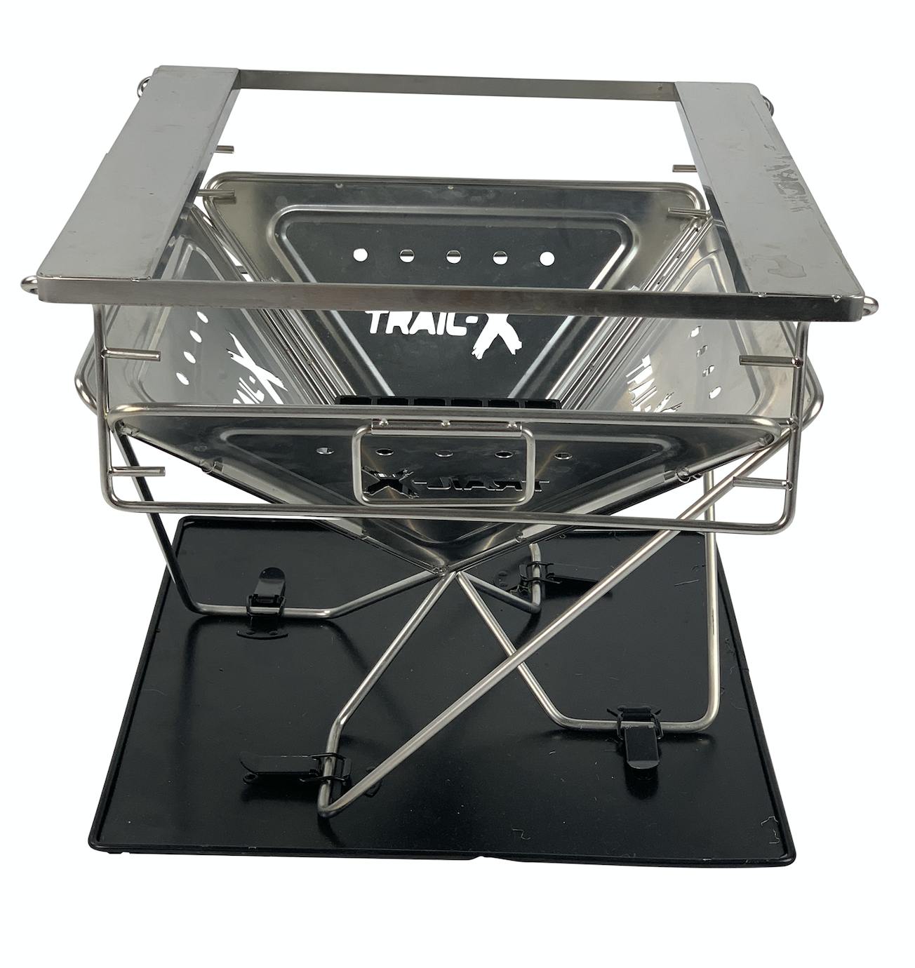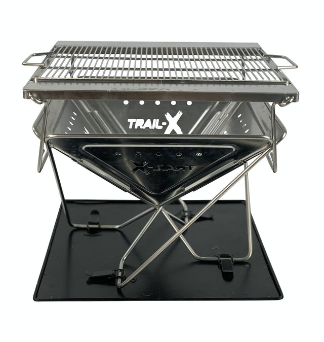 The Trail-X Stainless Steel Large BBQ Firepit is the ultimate outdoor cooking solution!! Use it as a firepit, use it as a grill, from the backyard to the campsite it's the perfect addition to your outdoor setup. The easy fold design sets up in seconds and stores away in a handy slimline carry bag making it fit almost anywhere. The heavy duty stainless steel construction caters to both timber and coal use and will not warp or buckle. The 304 grade stainless steel grill ( food grade ) has three height adjustment levels so no matter what temperature you want to cook up it has you covered.