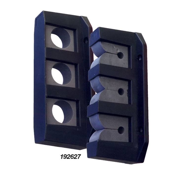 Used for storing rods in a vertical position onboard or at home. Base incorporates recesses for rod butt, while closed cell foam inserts in other mount support rod stems. Black U.V. stabilised plastic frame. Sold as a pair.