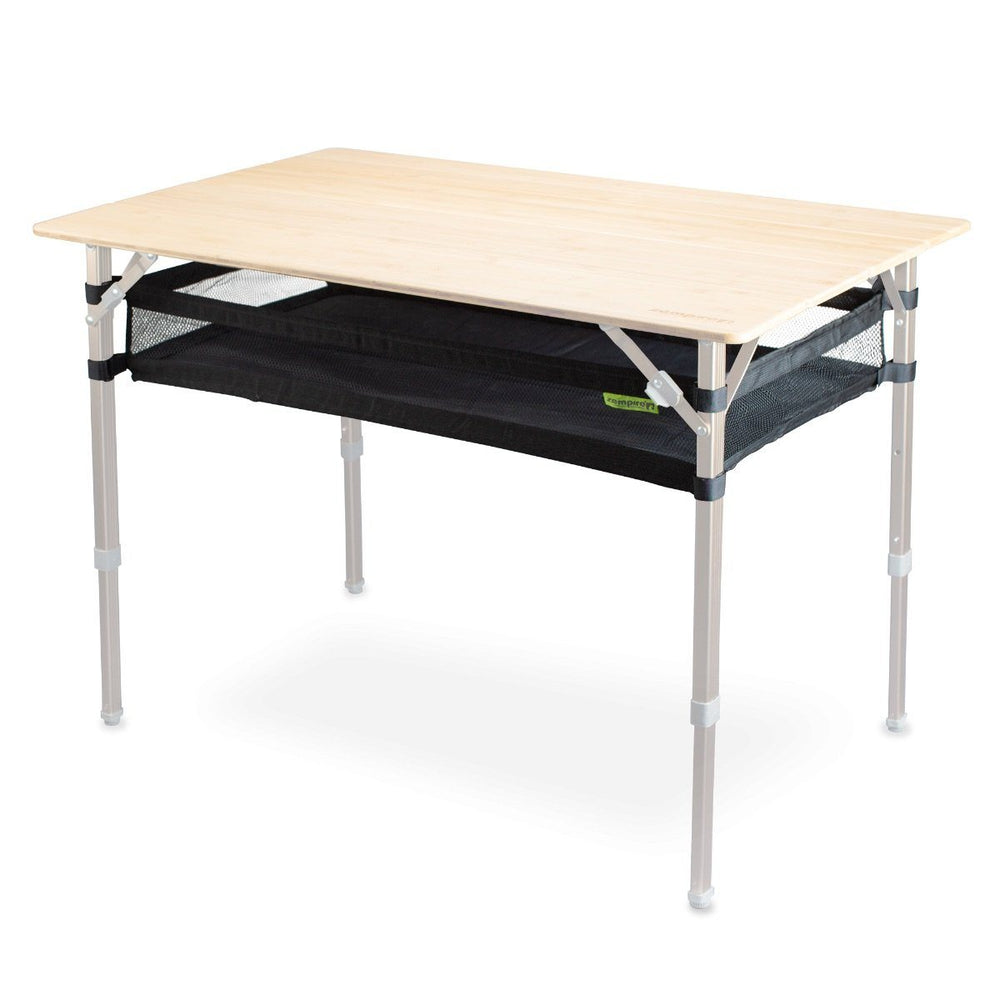Upgrade your Kitpac Large table with a handy storage hammock. The Kitpac Large Hammock is constructed with a durable poly oxford base and heavy duty mesh sides for visability and ventilation. Adjustable velcro mounting straps make it easy ot install and remove from your table. Perfect for storing reading materials, tableware and other camp essentials. Note, table in the images not included!